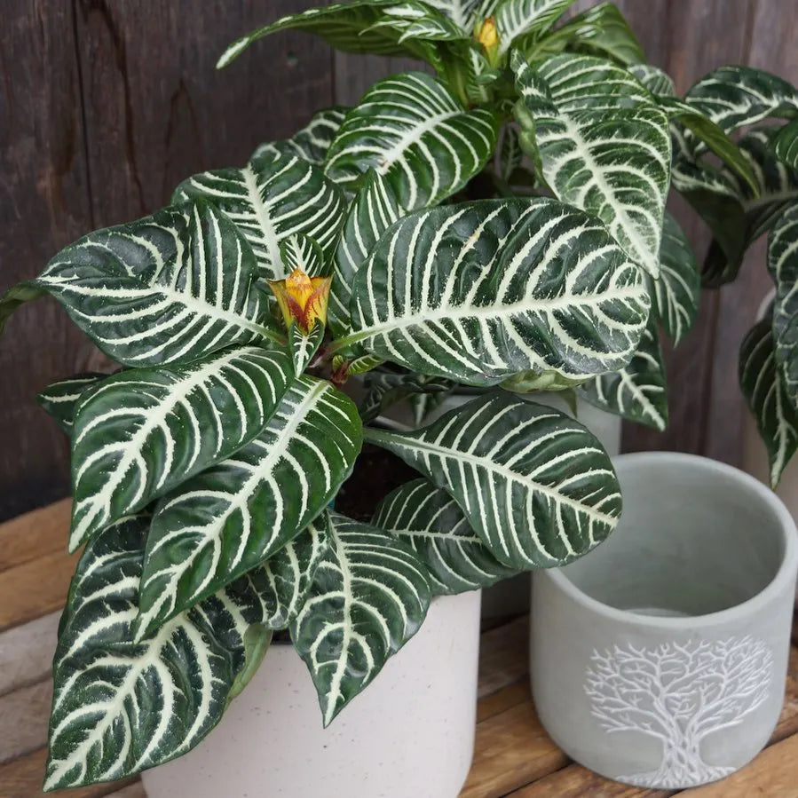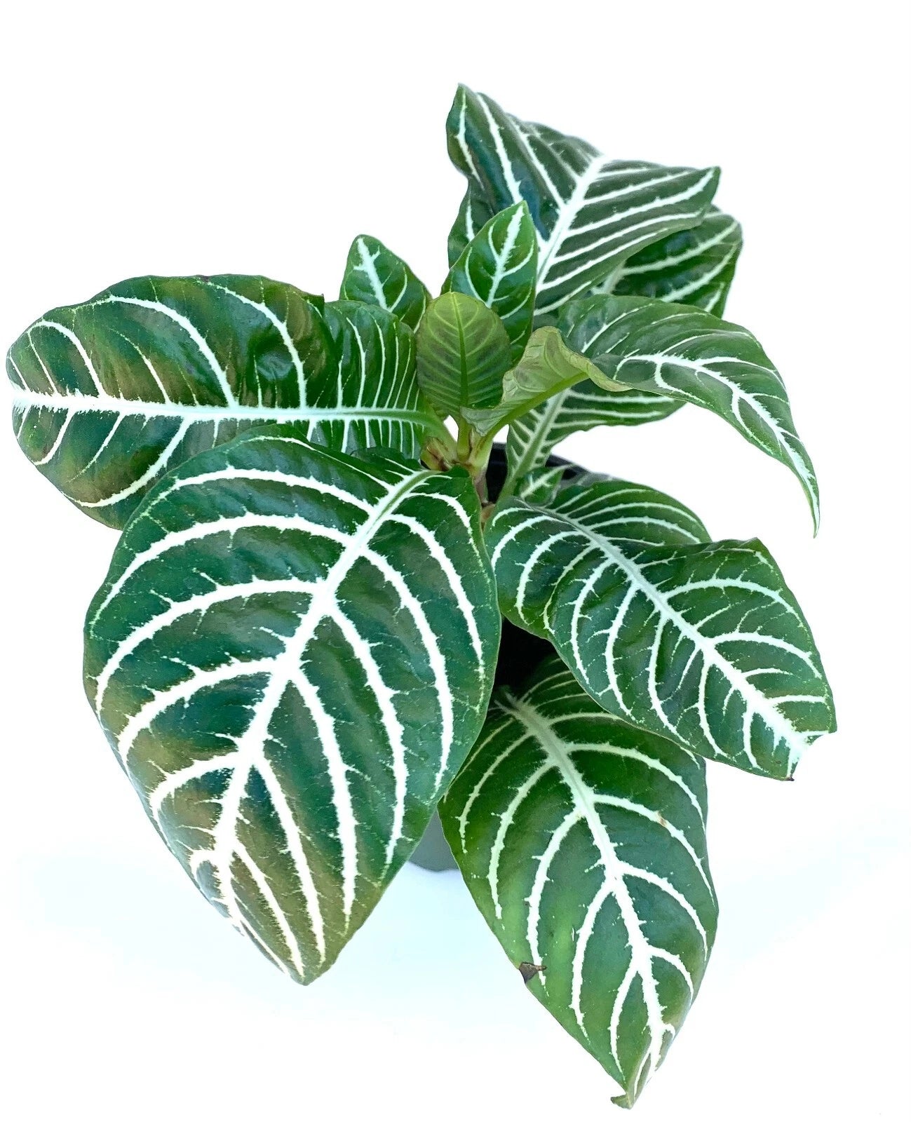 Bring vibrant greenery into your home with the Aphelandra Zebra Plant, a stunning tropical houseplant known for its striking dark green leaves marked with bold white stripes. This eye-catching plant not only adds a decorative touch but also helps freshen up your indoor space.